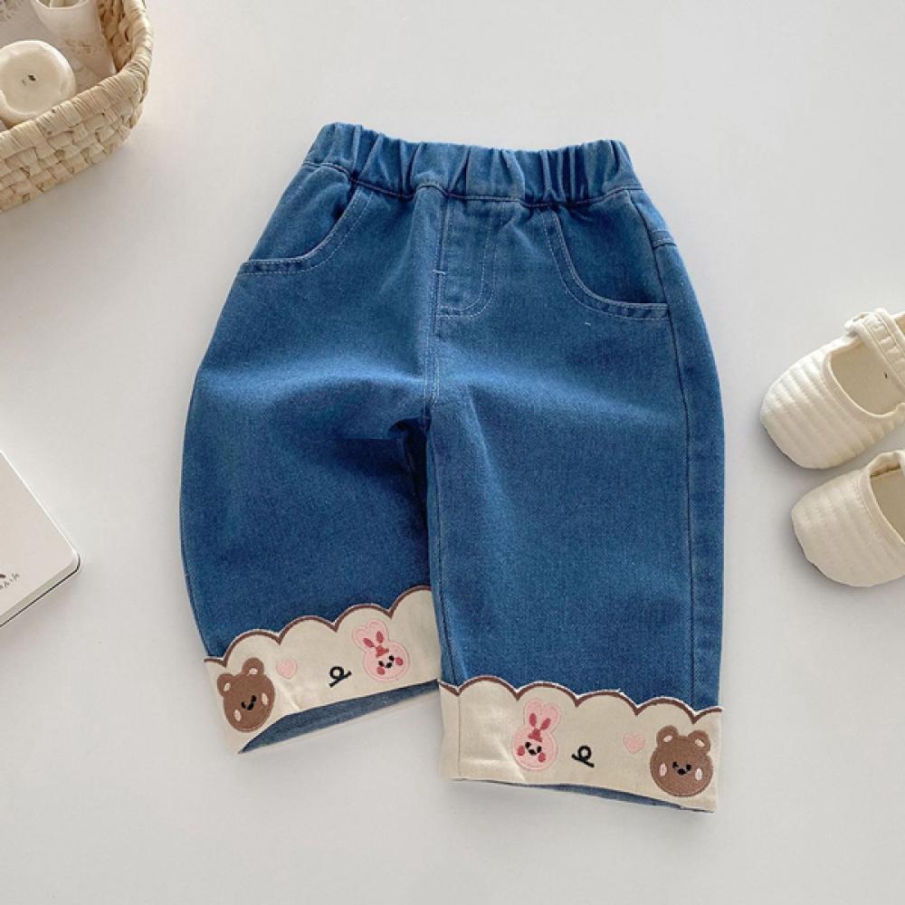 롤업뽀인트 여아동 자수 와이드 데님 밴딩팬츠 205567