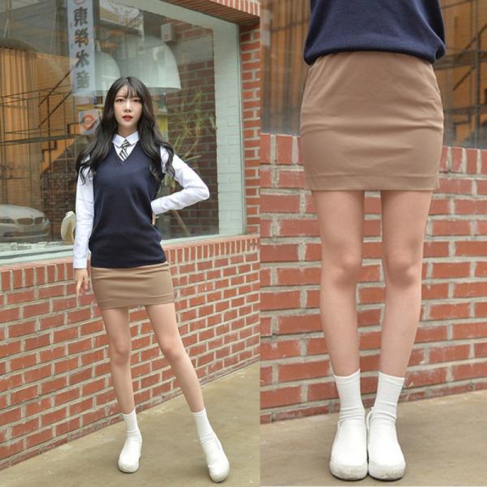 교복몰 스판 베이지 교복치마 교복 스커트