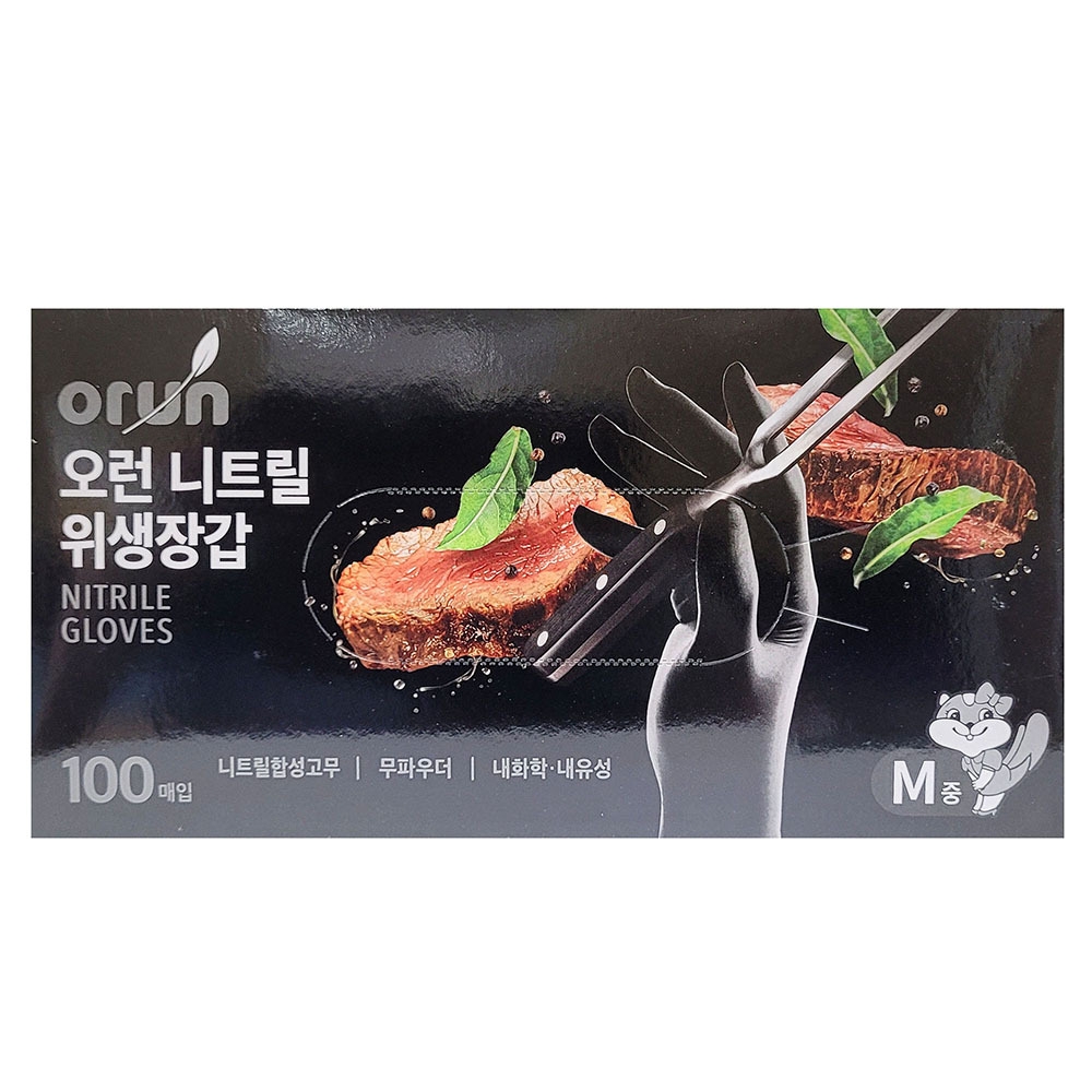 요리 포장 실험 염색 청소 니트릴 블랙 장갑 100입 M