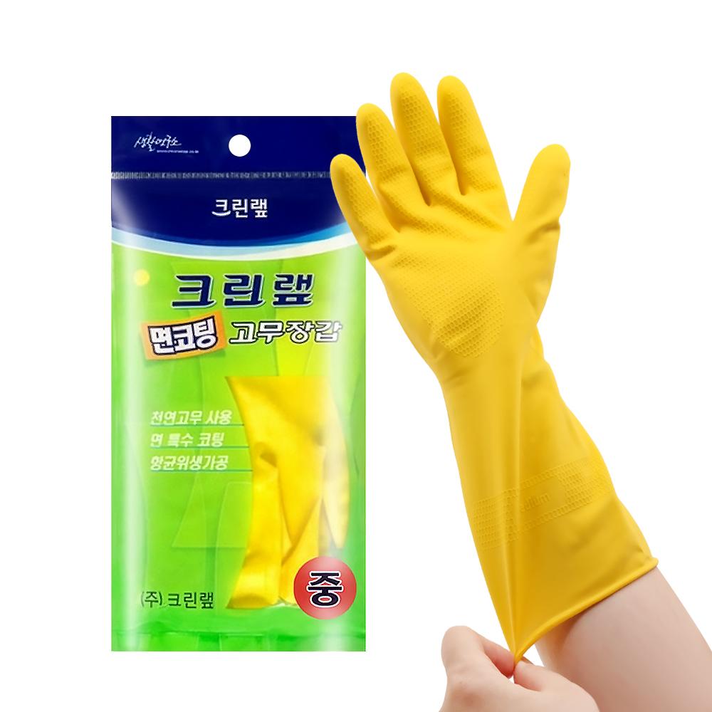 크린랩 면코팅 고무장갑 (중) 주방 장갑