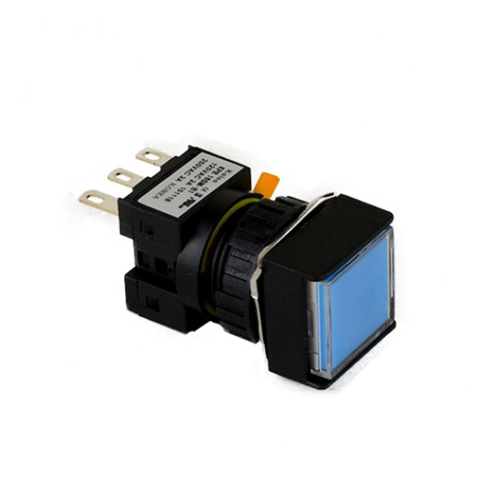 건흥전기 2A2B 푸쉬온 자동 복귀 리턴 스위치 사각형 ON- 옐로우 16mm (KPB16SM-Y2)