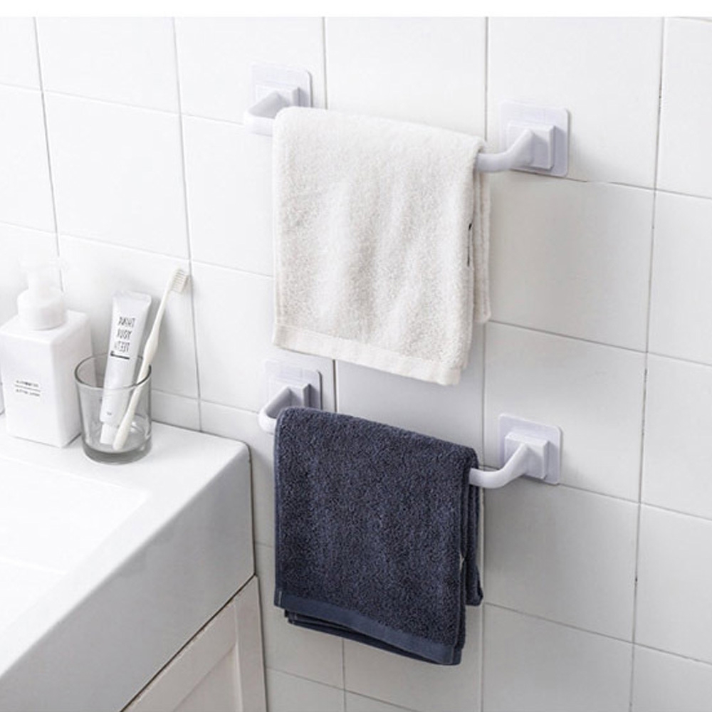 화이트 무타공 수건 걸이 세탁실 발수건 유아 샤워 타올 아기 걸이대 화장실 미니 타월 거치대 접착식 랙