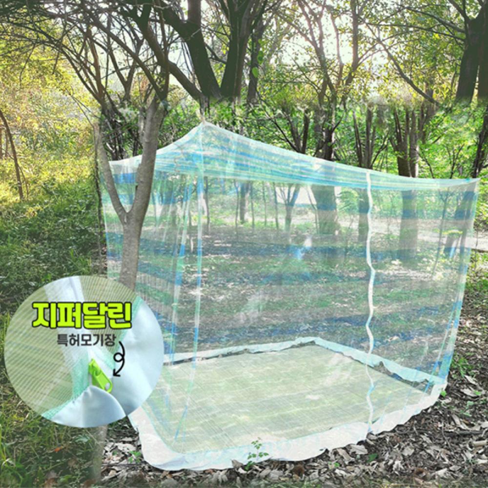 슈마켓 국산 지퍼달린 사각모기장 투톤줄무늬 7 8인용