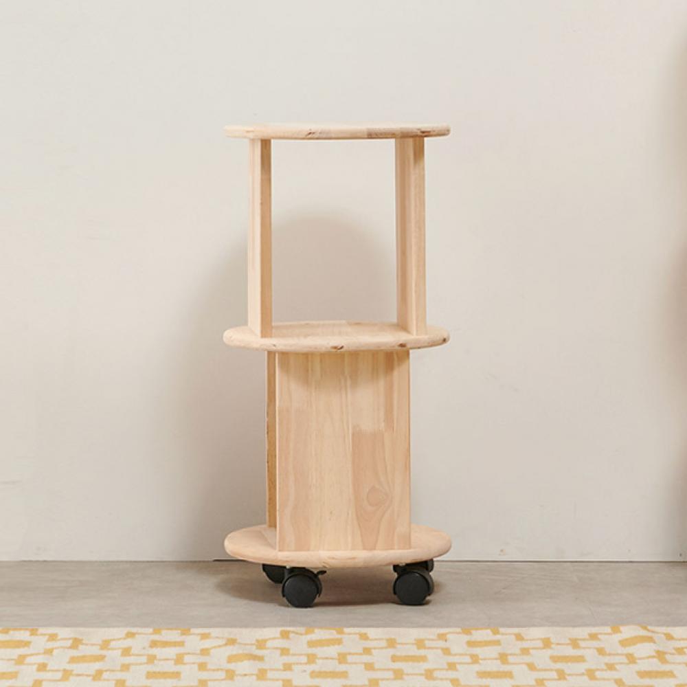 H6714 2단 고무나무 원형 이동선반 1color
