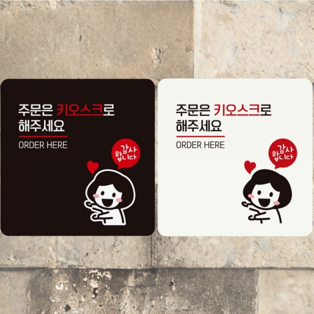 주문은키오스크로/여자 부착형 정사각 안내판 알림판
