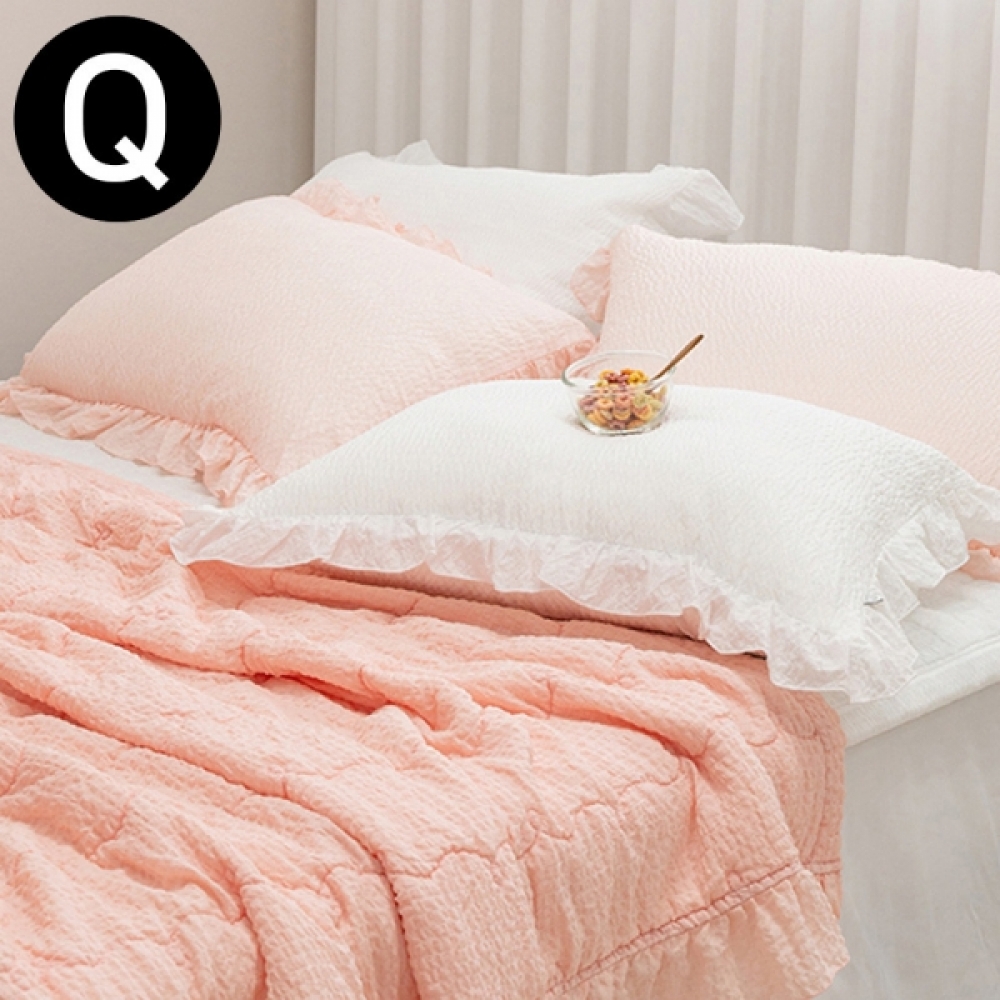 해피니 파스텔 피그먼트 아사면 여름 이불 베개커버세트 퀸 Q (피치핑크) (베개솜 별매)
