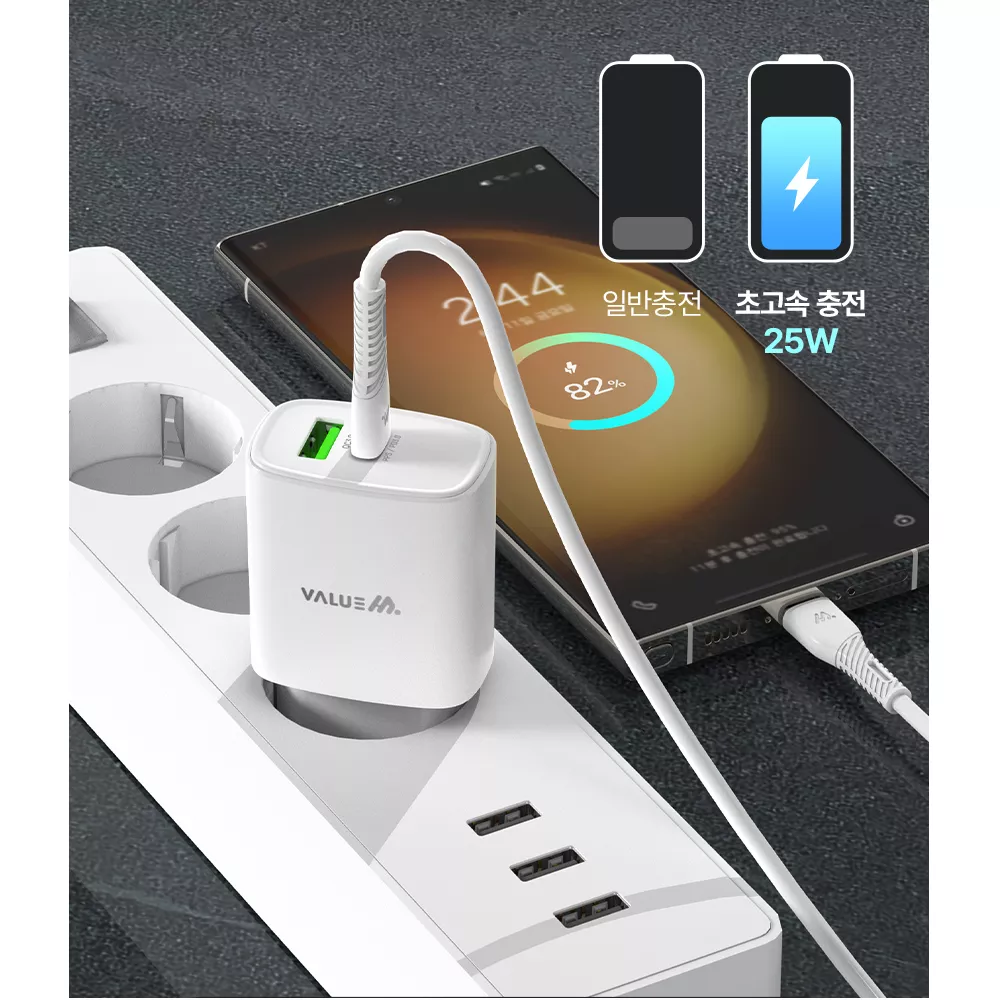 스마트폰 초고속충전기 2포트 USB-C + USB-A PPS 25W CtoC케이블 갤럭시 S10 5G S10플러스 S10e S10 충전기