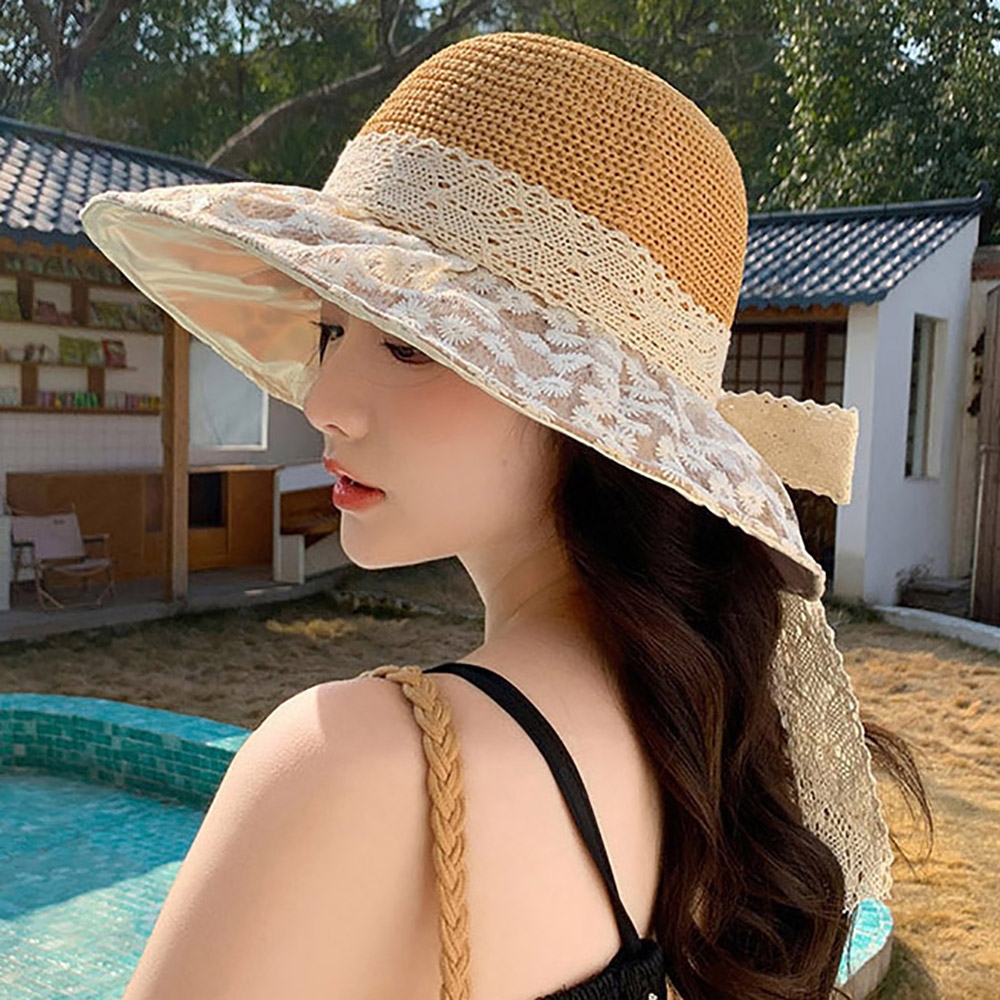 여자 레이스 플라워 포인트 휴양지 바캉스 밀짚 모자