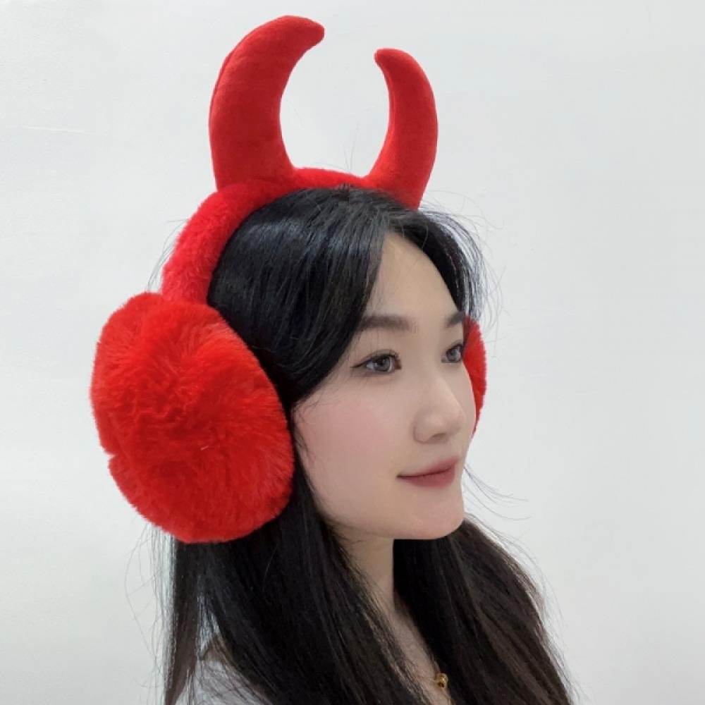 레드 악마뿔 겨울보온 털 귀마개 따뜻한귀마개 귀도리