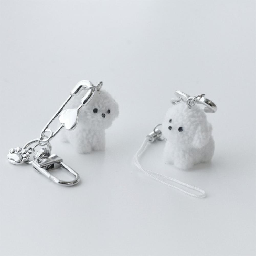 귀여운 미니 말티즈 하얀 강아지 열쇠고리 키링