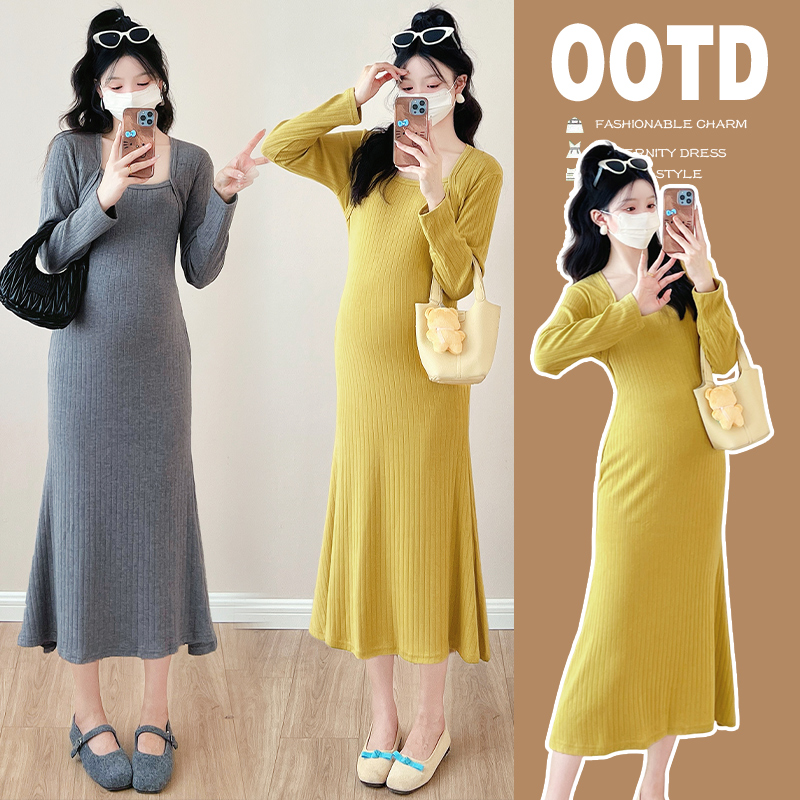 봄신상 임산부 슬림 니트 핀턱 원피스