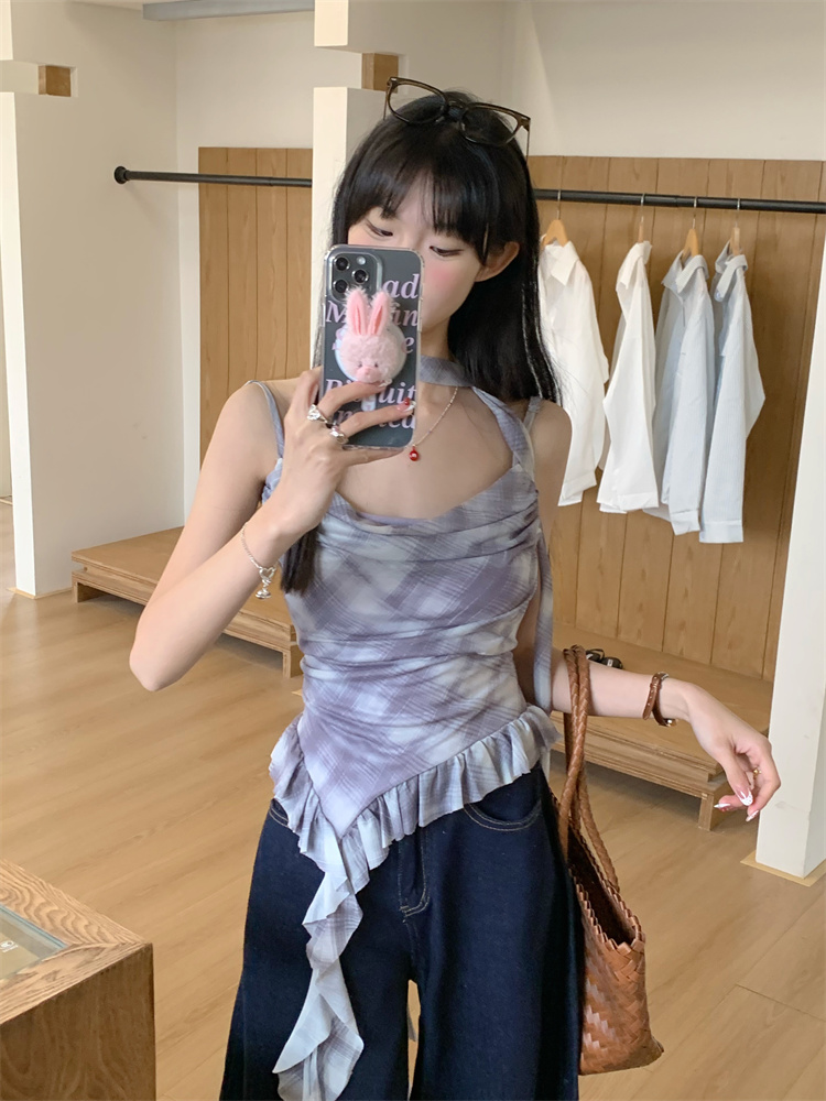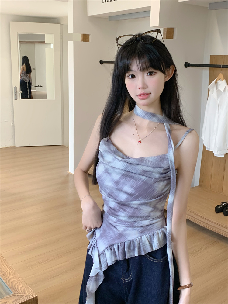 실사판타지러플 체크 나시 티셔츠 여름 베스트