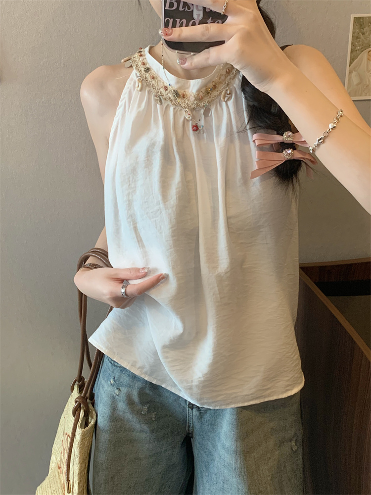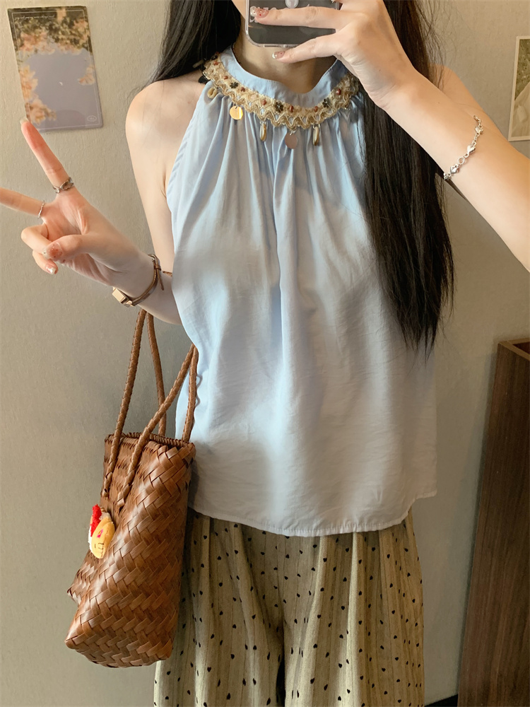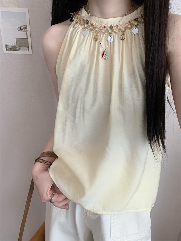 여름 플라워 자수 홀터넥 주름 루즈핏 나시