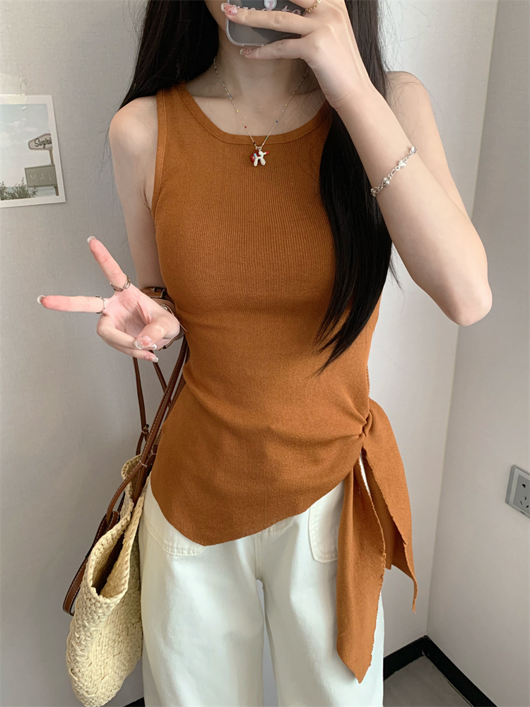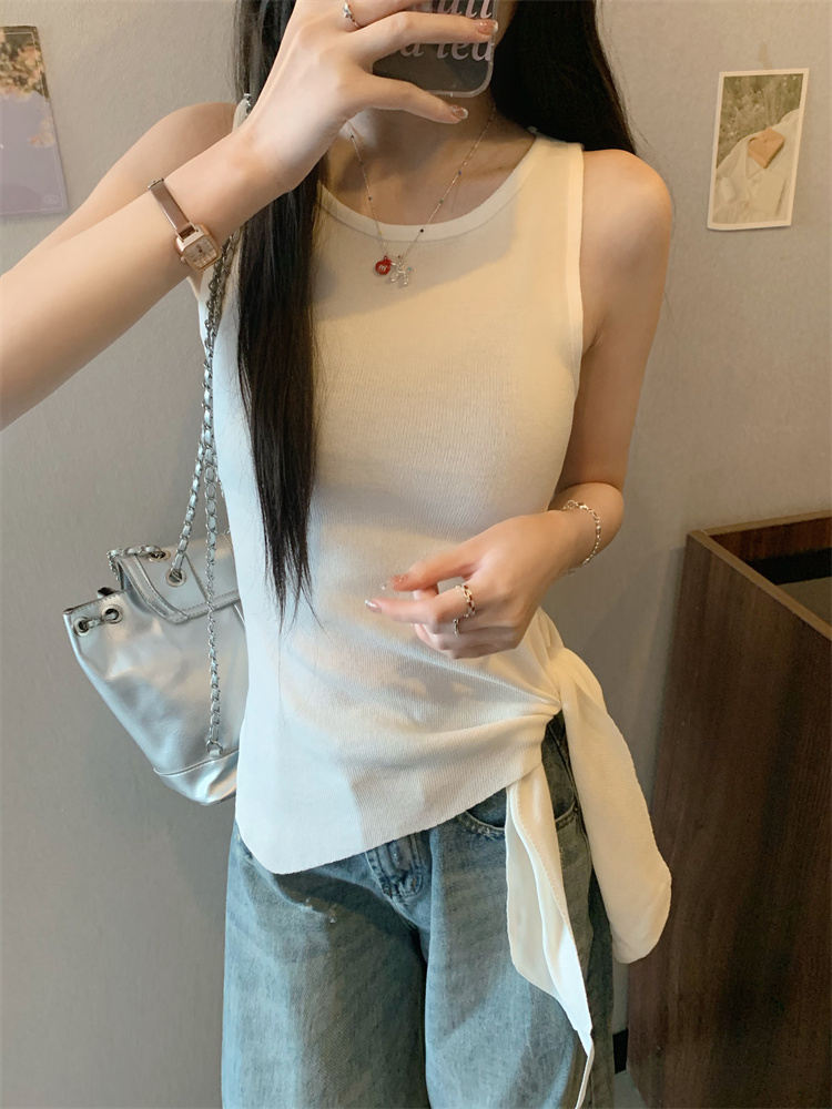 세련된 슬림핏 매듭 니트 끈나시 여름 상의