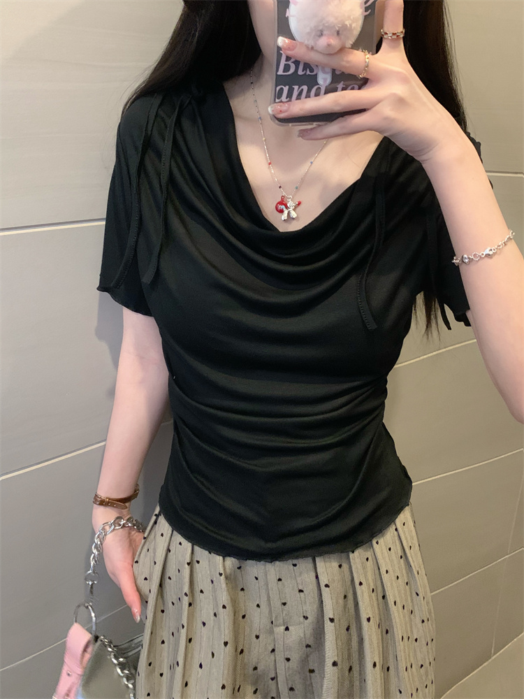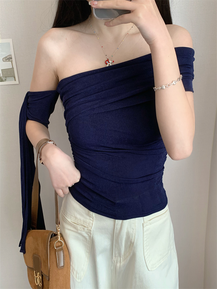 여름 시원한 오프숄더 셔링 반팔 티셔츠